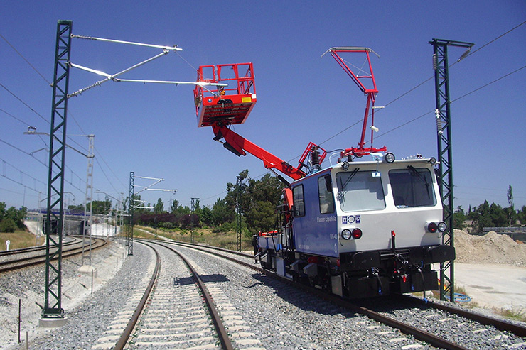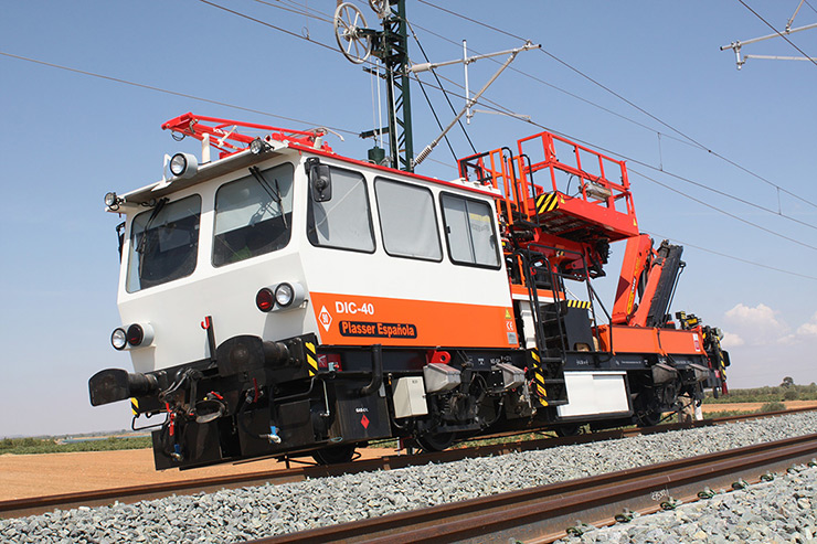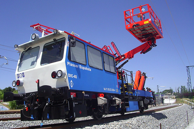La dresina DIC 40 en su versión de inspección de catenaria, es un vehículo auxiliar de vía para la inspección, conservación y montaje de línea aérea de contacto. Cuenta con plataforma y grúa.