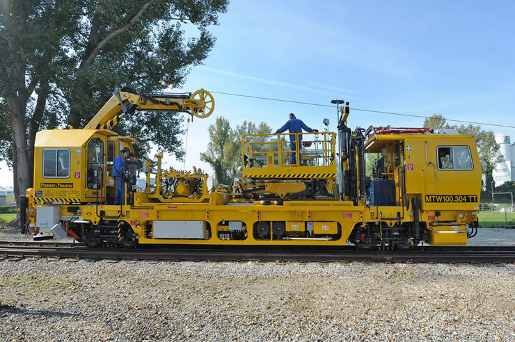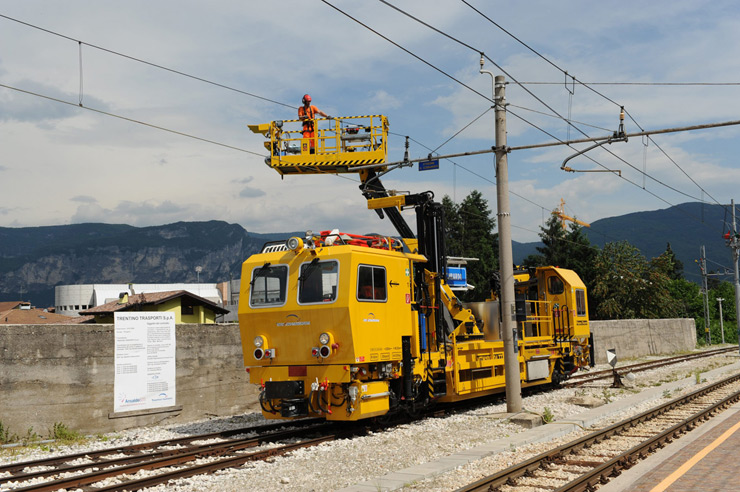 Dresina pesada de inspección y montaje con plataforma elevadora de columnas de tres particiones y grúa con cabina