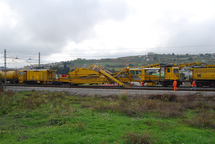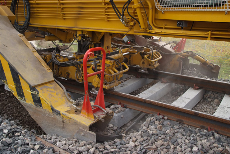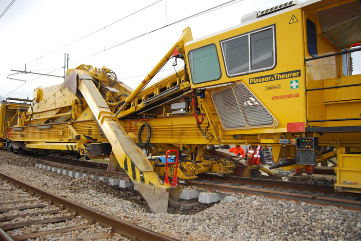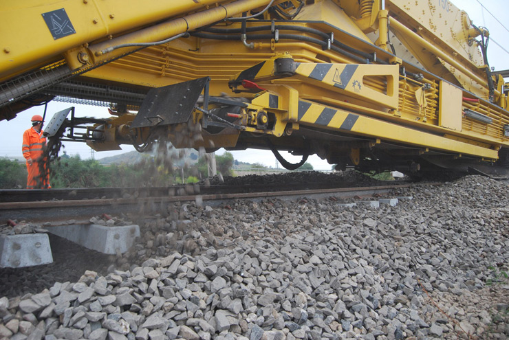 Máquina depuradora-desguarnecedora de balasto para línea y cambios con una cadena de excavación y un dispositivo de cribado