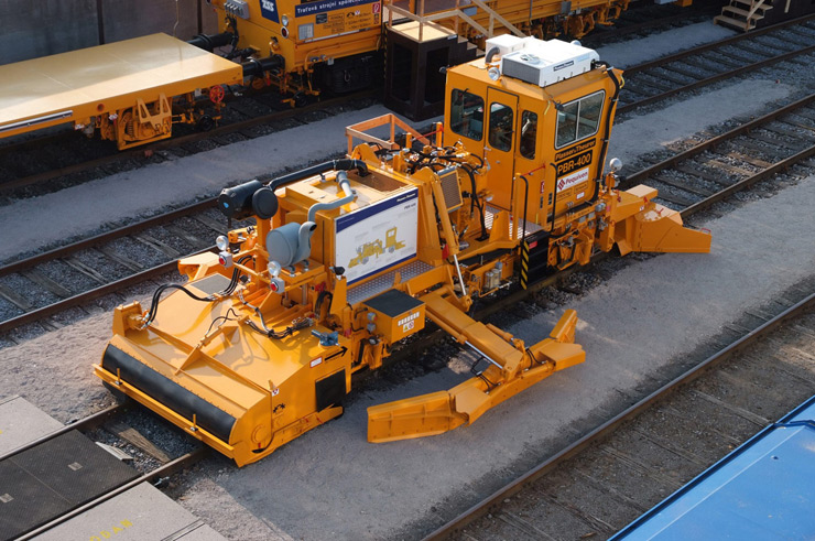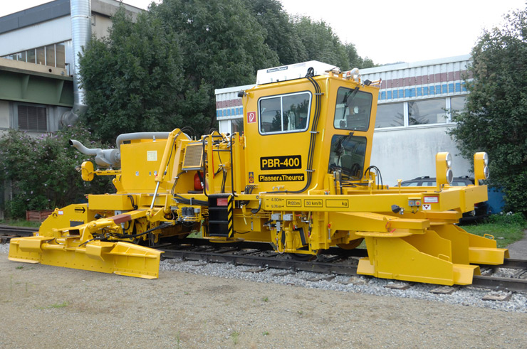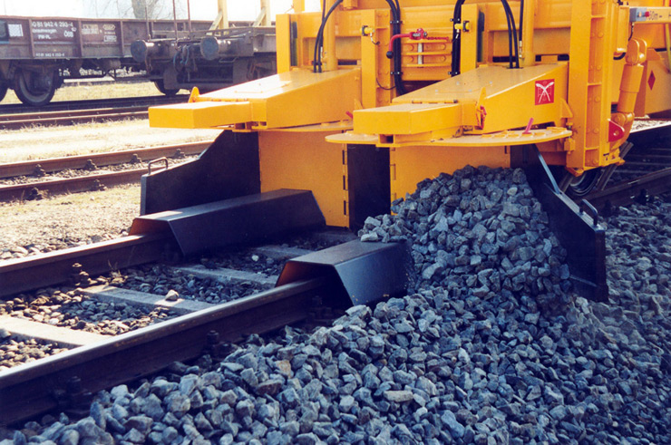 Reguladora y perfiladora de balasto para línea con arados laterales, arado central y dispositivo de barrido