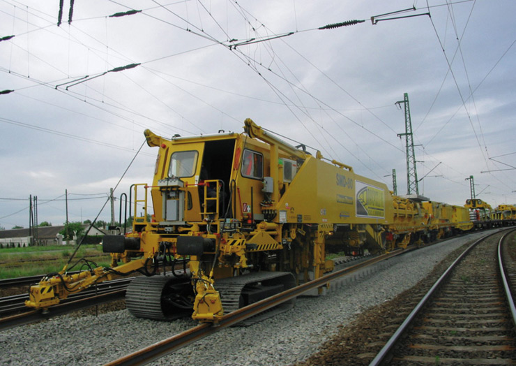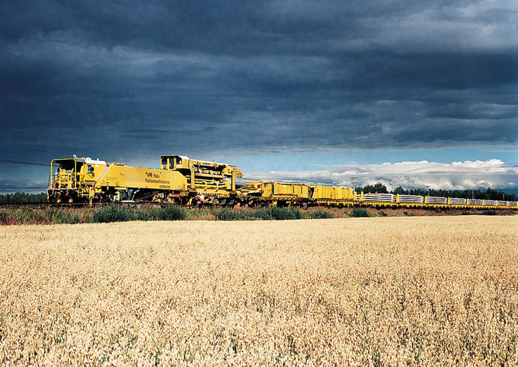Máquina de trabajo continuo de renovación y recolocación; tras una breve reconfiguración al inicio de la obra, también es apta para la colocación de vía nueva