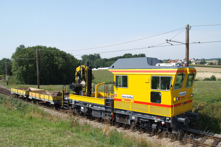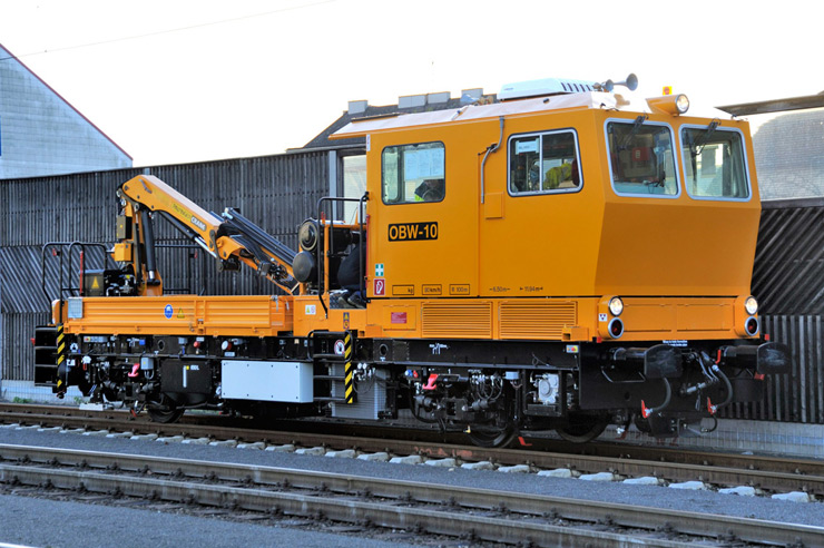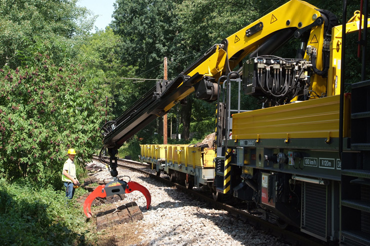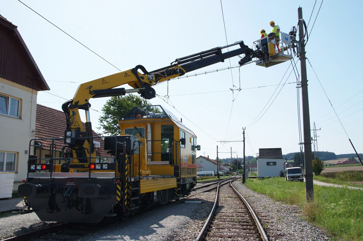 Vehículo pesado de mantenimiento de superestructura con plataforma de carga y grúa especial con cesta de trabajo, apto también para inspeccionar puentes
